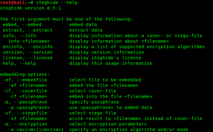 Then the installation process will start. After a successful install use following command to see the options of steghide tool.