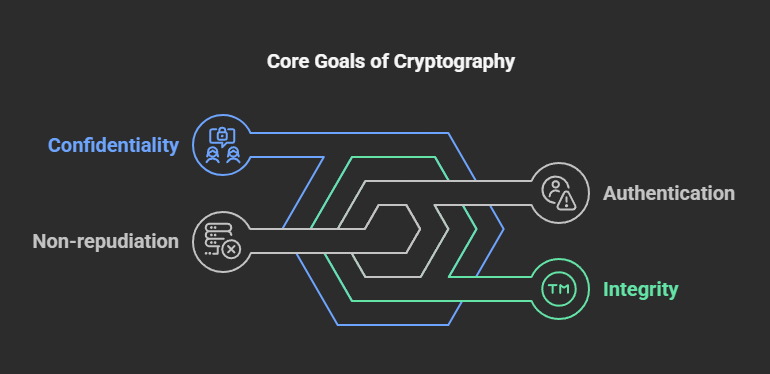 Cryptography is the art and science of securing information by transforming it into an unreadable format for unauthorized users. At its core, cryptography ensures four primary goals: