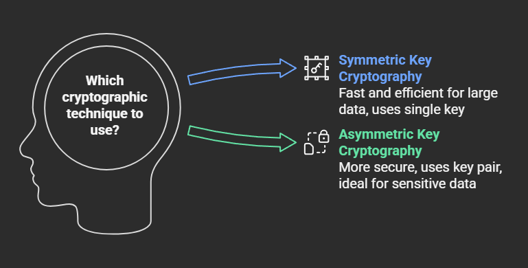 Cryptographic systems achieve these goals using algorithms and protocols. The two main types of cryptographic techniques are: