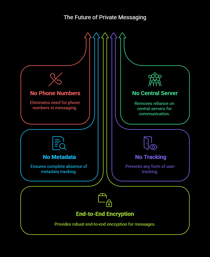 All of this happens with zero metadata or logs—just ephemeral encrypted messages in the cloud.