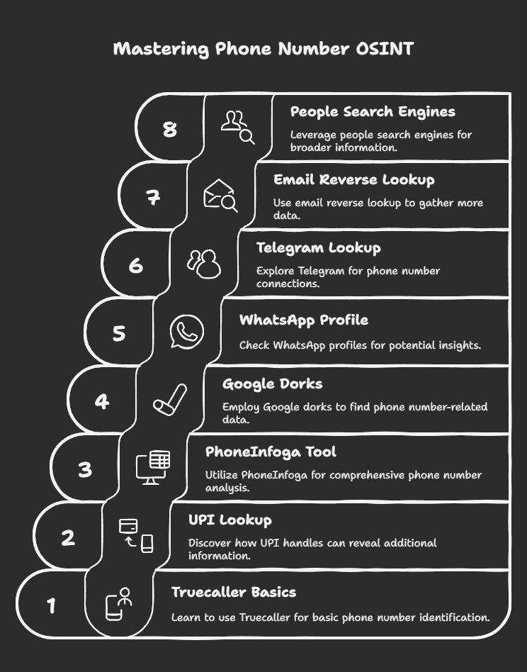 In the world of open-source intelligence (OSINT), phone numbers are one of the most underrated identifiers. Unlike usernames or emails, which are often generic or pseudonymous, mobile numbers are personal, permanent, and often tied to multiple services—making them a goldmine for recon. In this guide, we’ll walk through step-by-step techniques (all legal and ethical) for phone number OSINT—from tools and apps to search engine dorks and UPI handles.