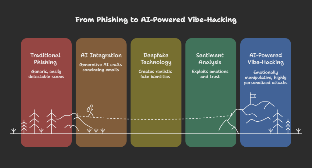 This isn’t just phishing 2.0. This is AI-powered cyberattacks combined with “vibe-hacking”—a strategy where cybercriminals exploit not just systems, but emotions, trust, and even the vibes of digital interactions.