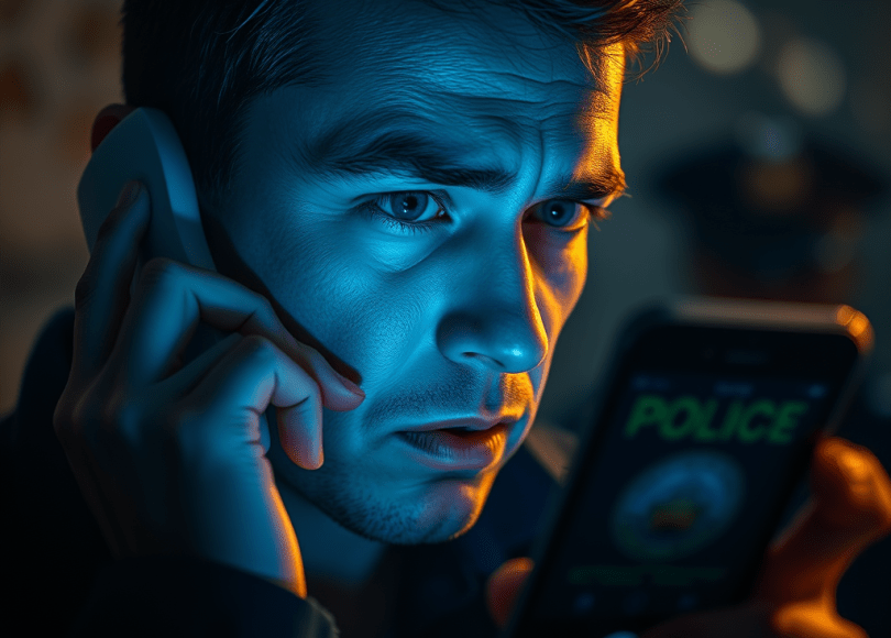 A scam where criminals pretend to be police and threaten arrest to extort money.